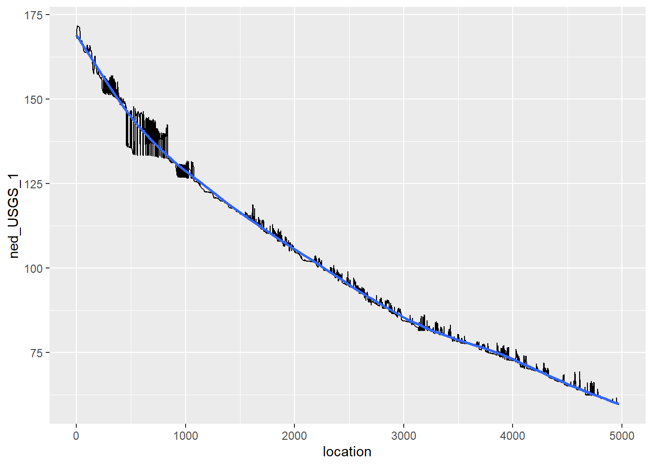 ggplot(transect, aes(x = location, y = ned_USGS_1)) +