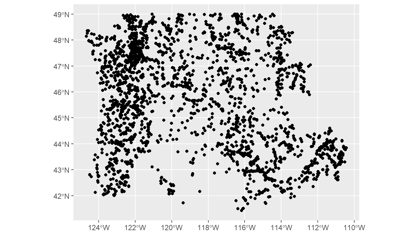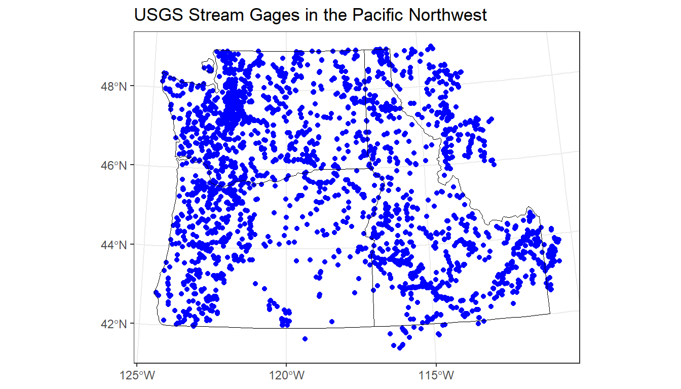 - read in a .csv file of USGS gages in the PNW that have coordinate columns